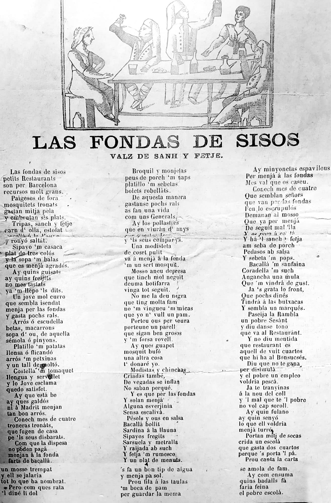 Els darrers anys aquest romanç ha decorat el Terra d’Escudella. Recull perfectament l’esperit de moltes fondes del moment, la seva variada clientela, les seves senzilles i suculentes menges, el seu argot, el seu ambient. Quin any es va editar aquest romanç? Enlloc apareix aquesta data, però des de la Biblioteca Arús ens han ajudat a resoldre el dubte: l’adreça que apareix al romanç, carrer de les Magdalenes 23, juntament amb la coincidència temporal i el registre lingüístic, apunta que l’editor fou Víctor Berdós, que va tenir una impremta en aquest carrer del 1879 al 1882.