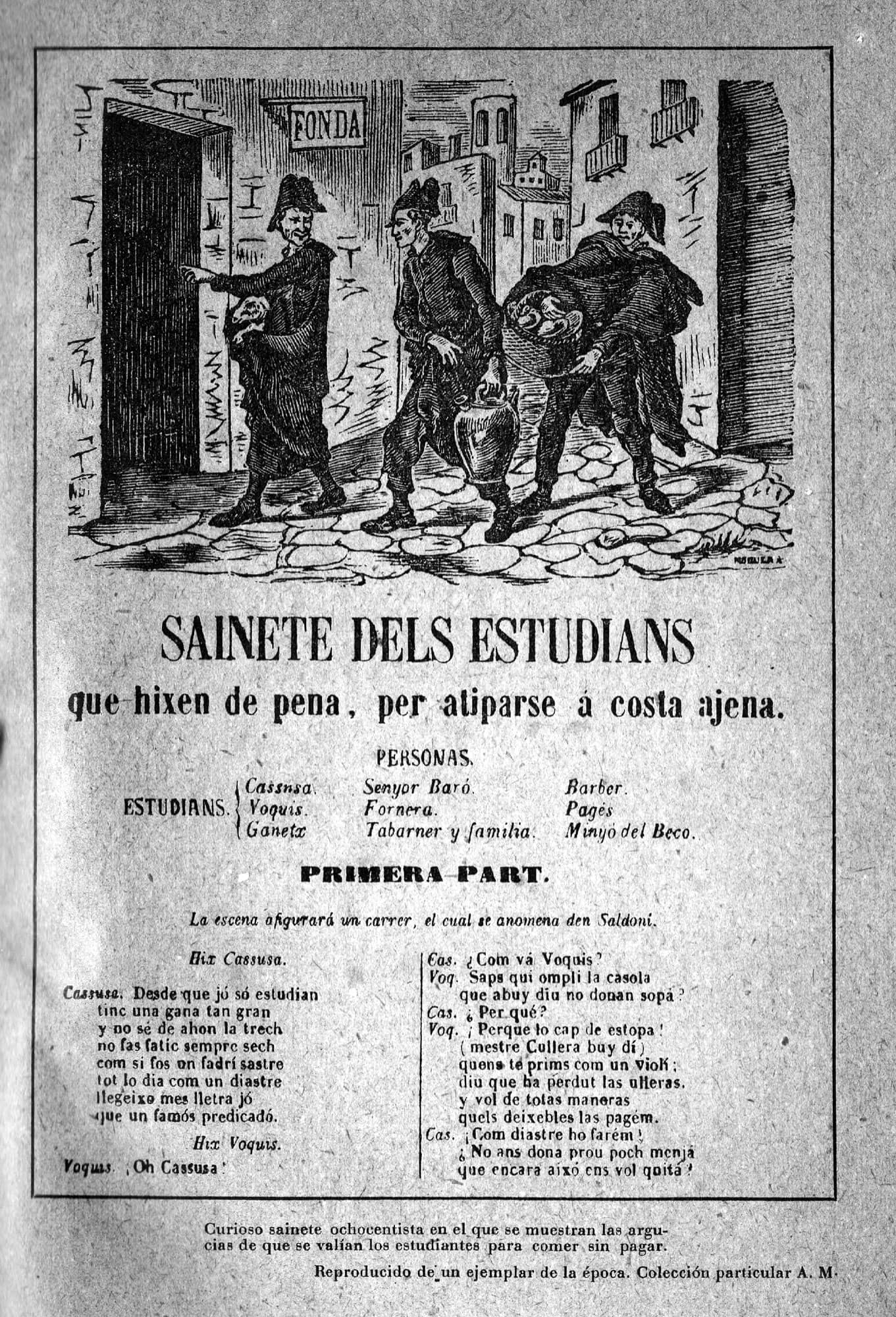 Sainete dels estudians que hixen de pena, per atiparse á costa ajena