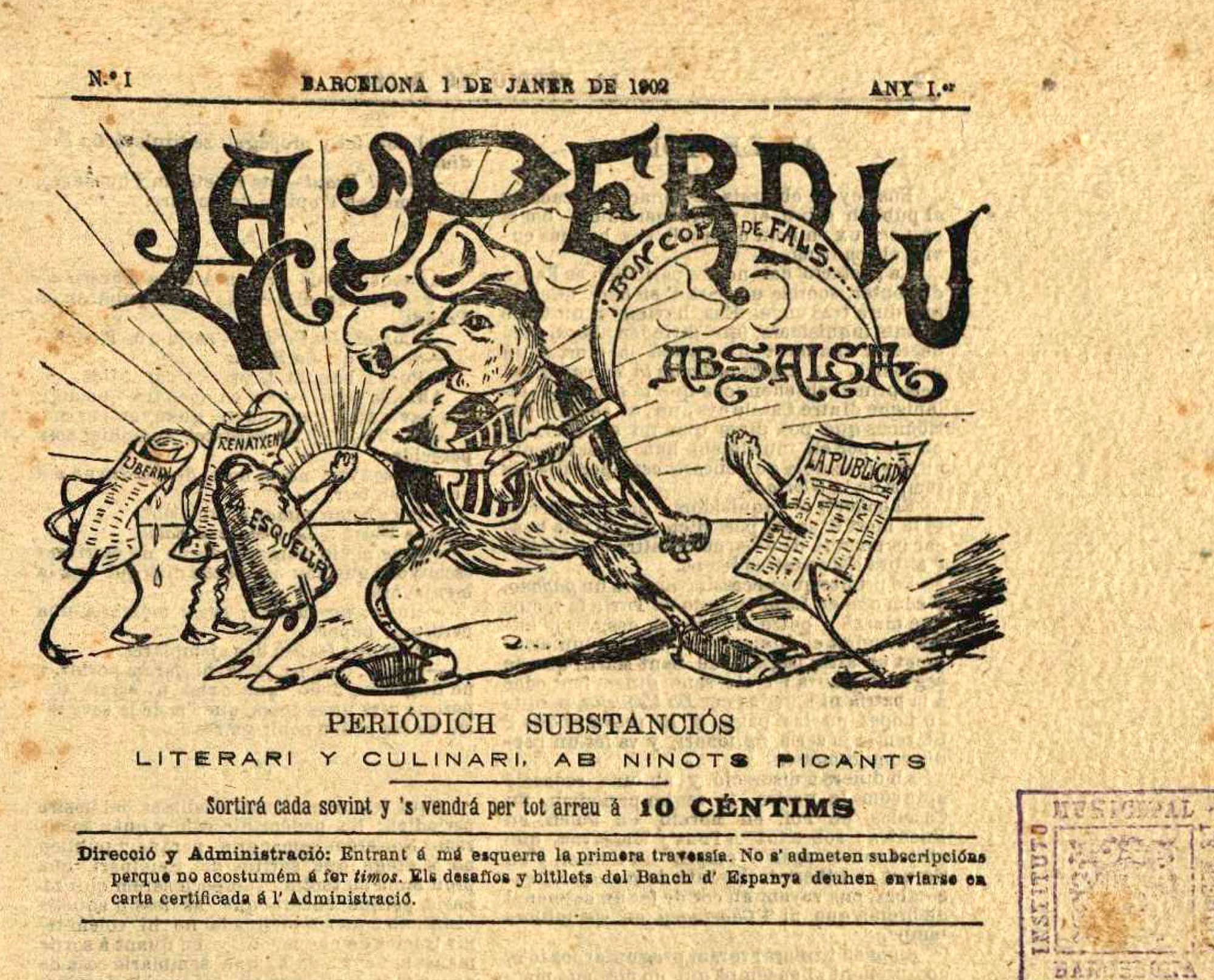 Tota aquesta efervescència culinària i cultural té el seu reflex a la premsa del moment, sobretot en la humorística. La utilització d’un llenguatge «gastronomitzat» es posa tant al servei de l’humor més hilarant com de la ironia més crítica. Jocs de paraules, ús de frases fetes i expressions relacionades amb la cuina, dobles significats, descripció d’episodis costumistes ambientats en fondes, cafès i tavernes, acudits protagonitzats per cambrers i cuiners… En publicacions satíriques i republicanes com L’Esquella de la Torratxa (1872-1936) o La Campana de Gràcia (1870-1934) hi sovintegen referències gastronòmiques, i n’hi ha d’altres que pivoten sobre elles.
